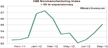 Der ISM-Einkaufsmanagerindex für den Dienstleistungssektor überraschte per Berichtsmonat September mit einem Anstieg von zuvor 53,7 auf 55,1 Punkte. Hier lag die Prognose bei lediglich 53,2 Zählern.