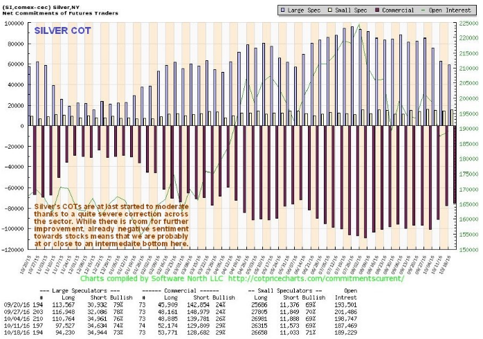Die derzeit äußerst negative Marktstimmung im Sektor der Gold- und Silberunternehmen ist ein Anzeichen dafür, dass wir einen zwischenzeitlichen Boden entweder bereits erreicht haben, oder kurz davor sind. Der Gold Miners Bullish Percent Index im obenstehenden Chart macht das sehr gut deutlich. Wenn wir diese Daten mit den COT-Berichten kombinieren, entsteht der Eindruck, dass wir uns am Beginn eines Basisbildungsprozesses befinden, der noch einige Wochen andauern könnte. Obwohl es bei Gold und Silber noch zu weiteren Kursverlusten kommen könnte, gehen wir davon aus, dass das Abwärtspotential der Minenaktien begrenzt ist, da deren Korrektur so heftig war, dass die Marktstimmung aktuell nur zu 21,4% bullisch ist. Es ist also sinnvoll, so langsam in den Sektor einzusteigen und die besten Aktien an Tagen mit Kursverlusten zu kaufen. Genau das haben wir in den letzten Wochen auch getan.