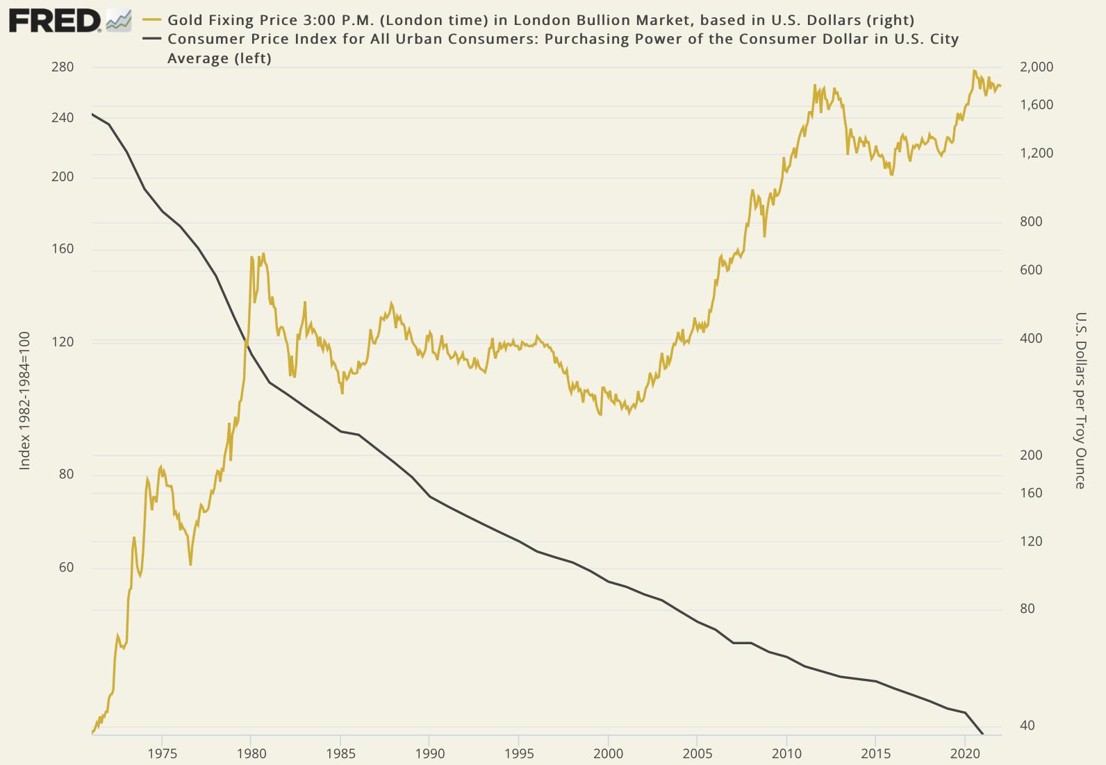 "Das Wesen der Inflation wird weithin missverstanden und falsch interpretiert", schreibt der ehemalige Wall Streeter Dave Kranzler in einer Analyse auf Investing.com. "'Inflation' und 'Währungsabwertung' sind tautologisch - es sind zwei Phrasen, die dasselbe bedeuten... Die Abwertung des Dollar findet seit den frühen 1970er Jahren statt. Der Wert des Dollar im Verhältnis zu Gold (echtem Geld) ist um 98% gesunken. Im Jahr 1971 konnte man für 40.000 Dollar ein 4.000 Quadratmeter großes Haus in einem guten Vorort kaufen. Heute braucht man im Durchschnitt 700.000 Dollar, um dasselbe Haus zu kaufen. Die Preisinflation ist ein Beweis für die Abwertung der Währung."