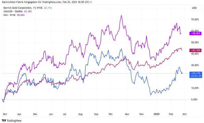 Barrick Gold Aktie: Deutlich abgeschlagen gegenüber Goldpreis und Goldminenindex HUI