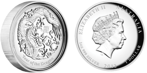 Das diesjährige Motiv ist wie bei den anderen Silbermünzen der Lunar-Reihe die Abbildung eines Drachen und einer Perle. Zudem ist der Schriftzug "Year of the Dragon" sowie das chinesische Schriftzeichen für "Drache" aufgeprägt.