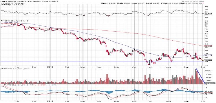 Interessant ist aktuell die Reaktion der Goldminen auf diesen heftigen Einbruch. Sie halten sich vergleichsweise gut und die Umsätze sind extrem niedrig. Natürlich ist der Tag noch lang, doch bislang sieht es so aus, als hätten die Minen ebenfalls keine Lust mehr, auf diese offensichtlichen Spielchen zu reagieren: