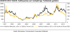 Die Talfahrt der Kaffeepreise hält an. Der Preis für Kaffee Arabica liegt nur noch knapp über der Marke von 100 US-Cents je Pfund, was dem niedrigsten Niveau seit mehr als sieben Jahren entspricht. Kaffee Robusta war gestern mit 1.442 USD je Tonne zeitweilig so billig wie zuletzt vor 3½ Jahren. Nach wie vor belastet die Aussicht auf eine rekordhohe Kaffeeernte in Brasilien, welche im kommenden Erntejahr ein Niveau von 60 Mio. Sack erreichen soll. Zudem zeichnet sich auch in Kolumbien eine deutlich bessere Ernte ab. Seit Jahresbeginn beläuft sich das Erntevolumen auf 8,66 Mio. Sack, was einem Anstieg um 43% gegenüber dem Vorjahr entpricht und das Niveau des gesamten Vorjahres bereits um knapp 1 Mio. Sack übertrifft.
