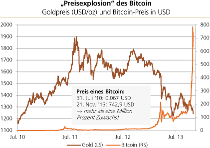 Zum anderen spekulieren Bitcoin-Nachfrager wohl auch darauf, dass der Wert des Internetgeldes (noch) weiter steigen wird gegenüber den Papierwährungen; sie setzen also auf weitere "Kapitalgewinne" des Bitcoin.