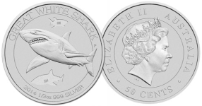 Die aktuellen Anlagemünzen der australischen Perth Mint sind die Känguru- und Lunar-Münzen in Gold sowie die Kookaburra-, Koala- und Lunar-Münzen in Silber.Anfang April angekündigt und seit wenigen Tagen erhältlich, ist die neue "Great White Shark" Silberanlagemünze mit einem Hai-Motiv auf dem Markt.