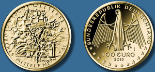Zum heutigen Beschluss der Bundesregierung, im Oktober 2015 eine 100-Euro-Goldmünze "UNESCO Welterbe - Oberes Mittelrheintal" herauszugeben, erklärt das Bundesministerium der Finanzen:Diese Münze wird die zwölfte Ausgabe im Rahmen einer 2003 begonnenen mehrjährigen Serie von 100-Euro-Goldmünzen zur Würdigung von UNESCO-Welterbestätten in Deutschland sein. Bisher sind in dieser Serie folgende 100-Euro-Goldmünzen erschienen: