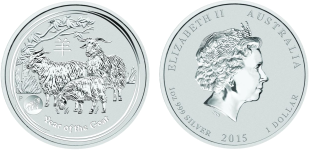 Nun ist die inzwischen vierte Lunar-Silbermünze mit dem sogenannten "Privy Mark" erschienen. Die diesjährige Ausführung zeigt wie die anderen 2015er Lunar-Silbermünzen eine Ziegenfamilie, die sich inmitten einer stilisierten ländlichen Gegend befindet. Ferner sind das chinesische Schriftzeichen für "Ziege", der Schriftzug "Year of the Goat" und das Prägezeichen der Perth Mint "P" aufgeprägt.