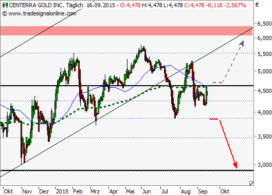 Die Hoffnung auf einen Fortschreibung positiver Gewinne schwindet sichtlich und so befindet sich das kanadische Minenunternehmen Centerra Gold Inc. in einem derzeit allgemein negativen Umfeld aller Minen wieder. Bis zur Mitte des Jahres noch wirkte der Chart recht konstruktiv, doch seit dem Reaktionshoch vom Juni gerät der Motor buchstäblich ins Stocken und die Tendenz neigt deutlicher gen Süden. Mehr zur weiteren Bewertung im Nachgang.