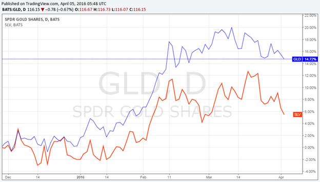 Der Liebling früherer Zeiten, das "Gold des armen Mannes", ist heute ein vergessener Rohstoff. Obwohl das Edelmetall dem Gold ähnelt, wird ihm bei Weitem nicht so viel Aufmerksamkeit zuteil. Ein Boden bildet sich immer dann, wenn die Marktteilnehmer kein oder nur ein geringes Interesse an einem Asset bekunden. Doch auf lange Sicht könnten Silberinvestitionen bessere Gewinne versprechen, als Goldanlagen.Der folgende Chart zeigt, warum Silber eine oft vernachlässigte Anlageoption darstellt. Seit Jahresbeginn hat Gold den Investoren ansehnliche Profite beschert. Die Entwicklung des Silberkurses im gleichen Zeitraum ließ jedoch wenig Euphorie aufkommen, wie der Chart illustriert.