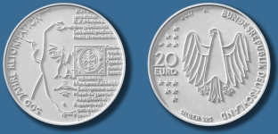 Die 20-Euro-Münze soll in den beiden Prägequalitäten Stempelglanz und Spiegelglanz in einer Legierung von 925 Tausendteilen Silber und 75 Tausendteilen Kupfer hergestellt werden. Sie hat eine Masse von 18 g und einen Durchmesser von 32,5 mm.