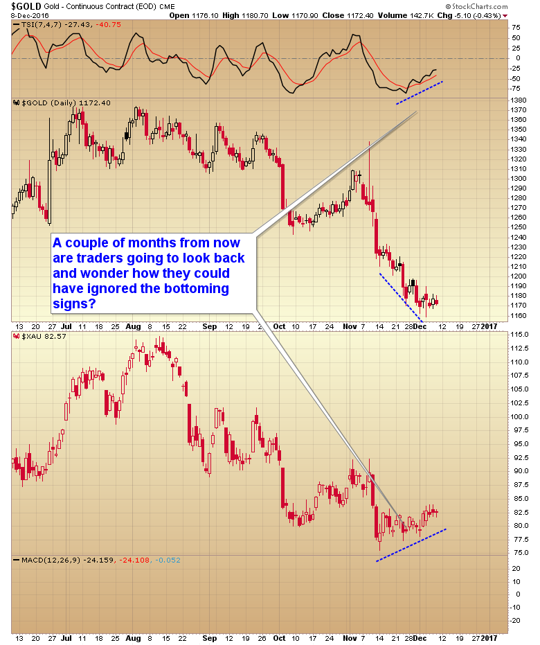 Werden die Trader in einigen Monaten zurückblicken und sich fragen, wie sie die Anzeichen für eine Bodenbildung bei Gold und dem Philadelphia Gold/Silver Index (XAU) nur übersehen konnten?