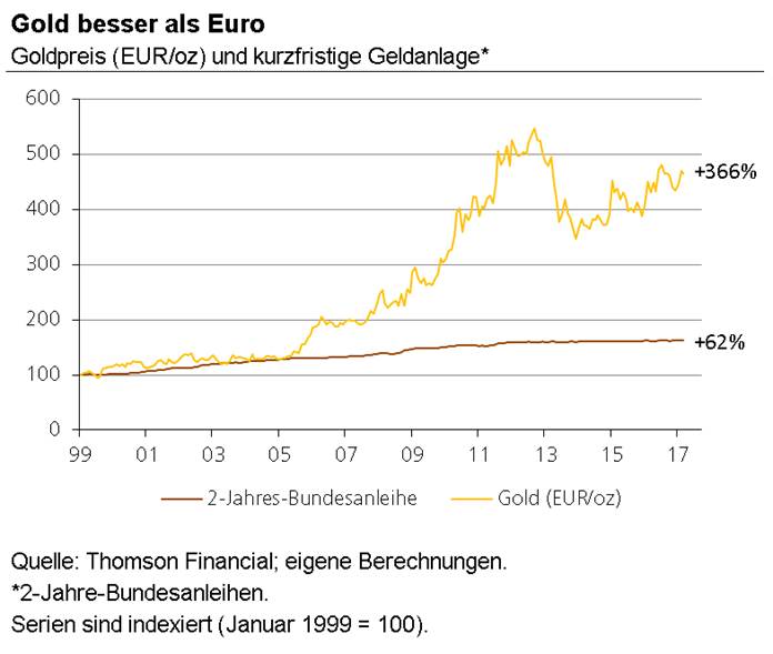 Gold ist eine Alternative zu Termin- und Spareinlagen. Es kann durch eine Negativzinspolitik nicht entwertet werden. Zudem trägt Gold kein Zahlungsausfallrisiko - wie zum Beispiel Bankeinlagen und Schuldpapiere.