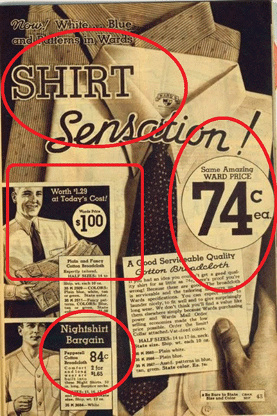 Eine Seite aus dem Katalog des Versandhandels Montgomery Ward aus dem Jahr 1934: