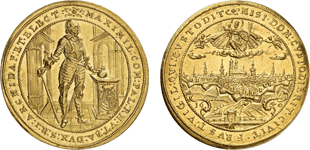 Abb. 10: Bayern, Maximilian I. (1592-1651), 5 Dukaten 1640 auf die Neubefestigung der Stadt.