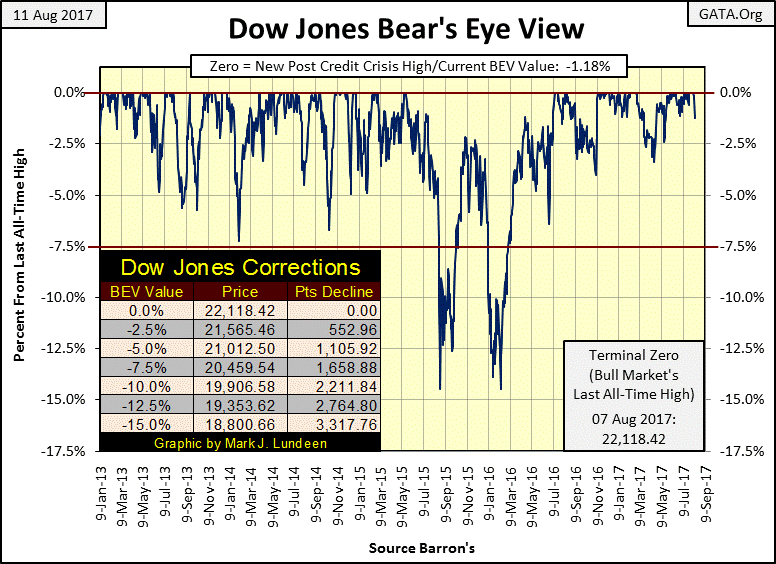In Anbetracht all des Geredes über einen nuklearen Schlagabtausch zwischen Nordkorea und den Vereinigten Staaten hätte ich an den Märkten deutlichere Kursrückgänge erwartet. Die Renditen der US-Staatsanleihen sind im Laufe der Woche sogar gesunken, weil die Anleger die Sicherheit der Schuldpapiere des größten Schuldners der Geschichte suchten. Im Moment ist der Aktienmarkt also noch nicht bereit für einen Einbruch und die alten monetären Metalle sind noch nicht bereit für ihre historischen Kursgewinne.