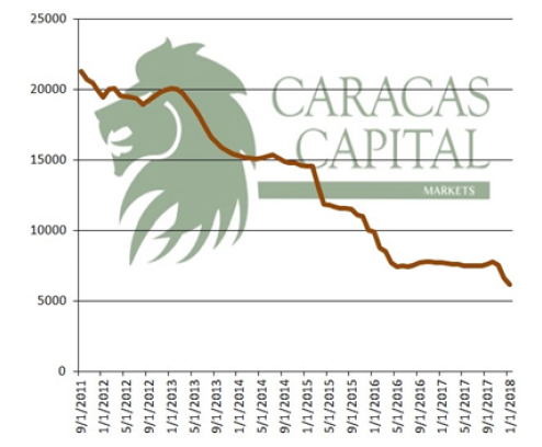 Des Weiteren wurden im Oktober des letzten Jahres mehrere durch Gold gedeckte Kredite fällig. Infolgedessen verlor Venezuela in den letzten beiden Monaten des Jahres 2017 Gold im Wert von 1,1 Milliarden Dollar. Somit besaß das Land zum Stand vom 31. Dezember letzten Jahres 6,6 Milliarden Dollar in Gold.