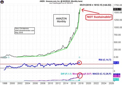 Beispiel: Eine Amazon-Aktie wurde 2008 für weniger als 35 Dollar gehandelt und überstieg vor Kurzem einen Wert von 1.600 Dollar je Aktie. Ich verstehe, dass Amazon fast die ganze Welt übernommen hat, aber ist die Aktie wirklich den 262-fachen Gewinn wert?