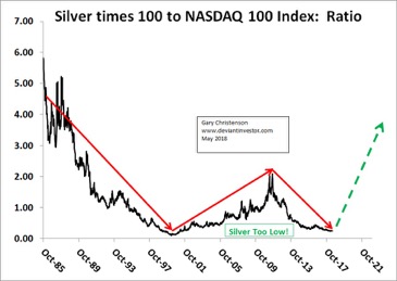 Verhältnis zwischen Silber (100-fach) und NASDAQ 100 Index