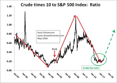 Verhältnis zwischen Rohöl (100-fach) und S&P 500 Index