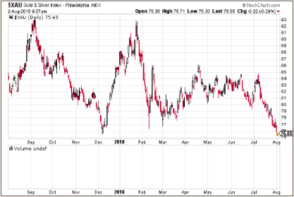 Vanguard, mit 5,1 Billionen Dollar in Vermögenswerten einer der weltgrößten Investment-Manager, wirft im Gold und Silber das Handtuch. "Der 2,3 Milliarden Dollar schwere Vanguard Precious Metals and Mining Fund wird in Vanguard Global Capital Cycles Fund als Bestandteil einer Restrukturierung umbenannt, um eine Ausweitung des Fondsmandates und eine Diversifizierung seines Portfolios zu beabsichtigen", so die Pressemitteilung vom 28. Juli.Dies sind exakt die Art von Nachrichten, die typischerweise dann einsetzen, wenn ein Markt seinen Tiefpunkt oder Höhepunkt erreicht hat. Zum Hochpunkt der Dotcom-Blase Ende 1999 etwa, änderten viele Fonds ihren Namen, um "Internet" hinzuzufügen. Es war der Sargnagel für den damaligen Bullenmarkt.