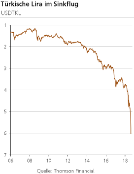 Nach langen Jahren des wirtschaftlichen Erfolgs - die türkische Wirtschaft ist seit Mitte 2009 um durchschnittlich mehr als 6 Prozent pro Jahr gewachsen - sind "Überhitzungserscheinungen" und Fehlentwicklungen - wirtschaftlicher und politischer Art - unübersehbar geworden. Die Staatsdefizite der Türkei sind hoch, die Gesamtverschuldungsquote ist gestiegen, und mittlerweile steigt auch noch die Jahresinflation der Konsumgüterpreise stark in die Höhe: Im Juli 2018 lag sie offiziell bei knapp 16 Prozent, angeheizt von einer starken heimischen Kredit- und Geldmengenausweitung.
