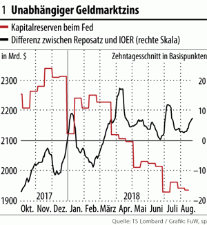 Es scheint sich ein von der Fed unabhängiger Geldmarktzins zu etablieren, der ihr die Kontrolle über das Tempo des Bilanzabbaus streitig machen könnte.