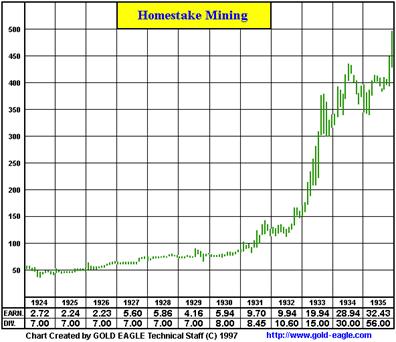 Sehen Sie den Aktienkurs von Homstake Mining, einer US-Goldmine in dieser Zeit: