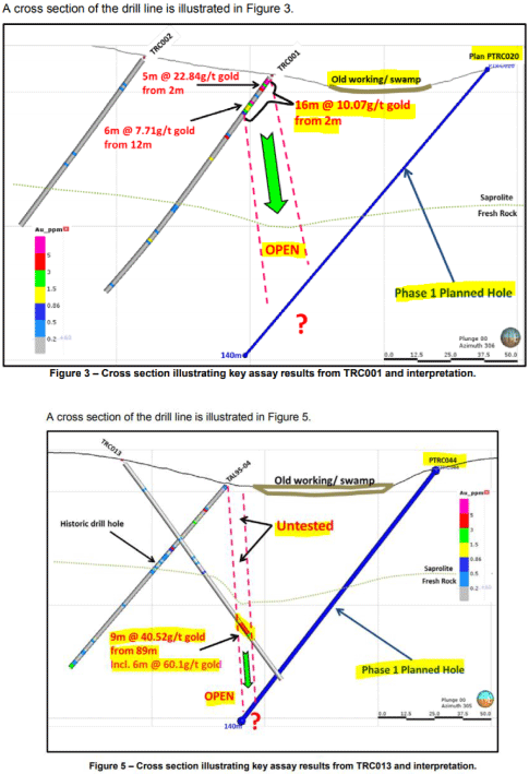 Die Querschnitte in der Meldung zeigen, dass die Bohrungen diverse Zonen getestet haben und gerade die beiden super Treffer mit über 10 Gramm und über 40 Gramm nach unten offen sind.