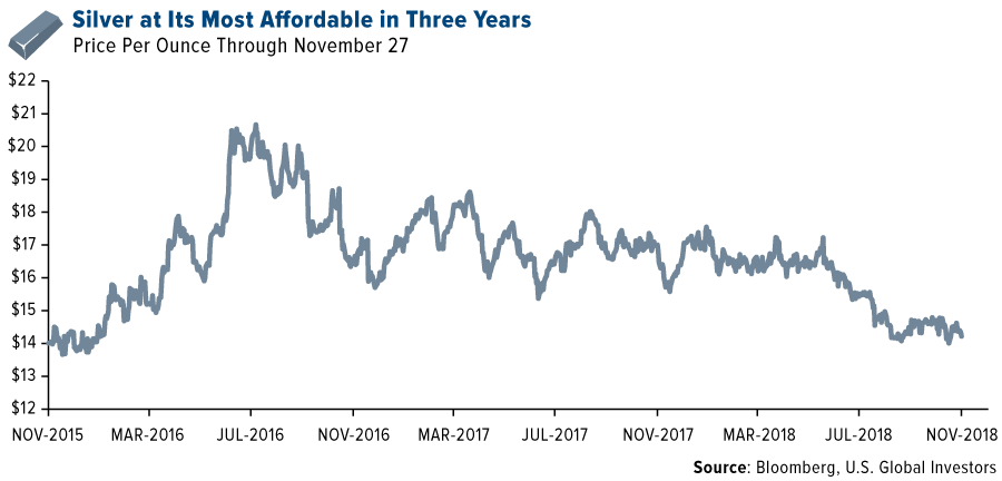 Werfen Sie einen Blick auf Silber. Das graue Edelmetall ist derzeit im Angebot und wird zu etwas mehr als 14 Dollar je Unze gehandelt. Das ist so erschwinglich wie noch nie zuvor in den letzten drei Jahren. Eine Silbermünze kostet nicht nur etwas weniger als beispielsweise ein Videospiel, sondern hält auch deutlich länger. Und anders als ein Videospiel besitzt die Münze das Potenzial, sogar noch an Wert zuzulegen.