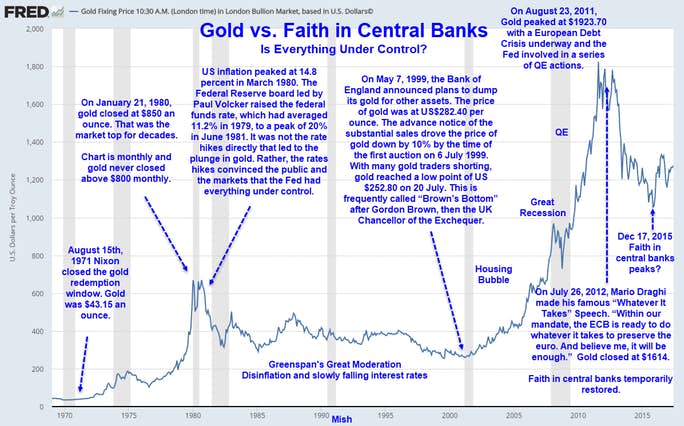 Doch Zell ist korrekt, dass Gold eine Absicherung ist, wenn auch nicht auf die Art und Weise, wie er es sich vorgestellt hat. Gold ist eine Absicherung gegen Zentralbanken und unkontrollierbare Kreditexpansion.