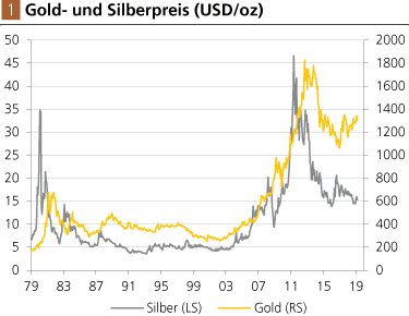 Anders als vielfach zu lesen und zu hören ist, lassen sich aus dem Gold-Silber-Preisverhältnis keine eindeutigen, verlässlichen Handlungsempfehlungen ableiten.Das Gold-Silber-Preisverhältnis ist seit jeher für Edelmetallanleger von besonderem Interesse. Das hat einen währungshistorischen Grund: Gold und Silber sind immer wieder als Geld verwendet worden, manchmal gleichzeitig ("Bimetallismus"), manchmal gab es auch einen Silberstandard (wie zum Beispiel über viele Jahrhunderte in Großbritannien), manchmal auch einen Goldstandard (wie zum Beispiel ab Ende des 19. Jahrhunderts in den USA und Europa). Der Geldcharakter der beiden Edelmetalle mag daher erklären, warum Gold- und Silberpreise sich in den letzten Jahrzehnten tendenziell meist in die gleiche Richtung entwickelt haben (Abb. 1).