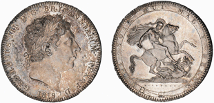 Crown (¼ Pfund) aus dem Jahr 1818 mit St. George & Drache