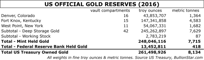 Ab und zu ermöglichen die US-Medien kleine Einblicke in die Goldreserven des US-Finanzministeriums, die in der U.S. Mint gelagert werden. Obwohl diese Berichterstattung nie etwas des Goldes, das in "tiefer Lagerung" sein soll, dokumentiert, enthält sie doch genug 'Anspielungen, damit die breite Öffentlichkeit die Begriffe "Goldlagerung" und "US-Regierung" miteinander verbindet und danach zu ihrem Alltag zurückkehrt; unter der Annahme, dass die USA die größten strategischen Goldreserven der Welt besitzen.Auffallend ist, dass diese Medienbeiträge, die in den Mainstream-Finanzmedien und auf Münz-/Numismatik-Nachrichten-Seiten gleichermaßen vorkommen, sich immer nur auf einen einzigen Ort beziehen, an dem die U.S. Mint Gold lagert, ein "Durchlauftresor" in der U.S.-Mint-Einrichtung in West Point, New York. Die Bilder dieses Tresorraums werden einigen Lesern bekannt sein. Sie zeigen mehrere Paletten mit 400 Unzen schweren Goldbarren vor einer US-Flagge und mit Unterschriften bekritzelte Tresorwände, die die Besucher über die Jahre hinterlassen haben.