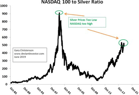 Silber befindet sich in einer gegenteiligen Position. Der Preis sank acht Jahre lang, baute eine fünfjährige Basis auf; die Stimmung ist schwach. Erwarten Sie Ende 2019 und 2020 einen höheren Preis.