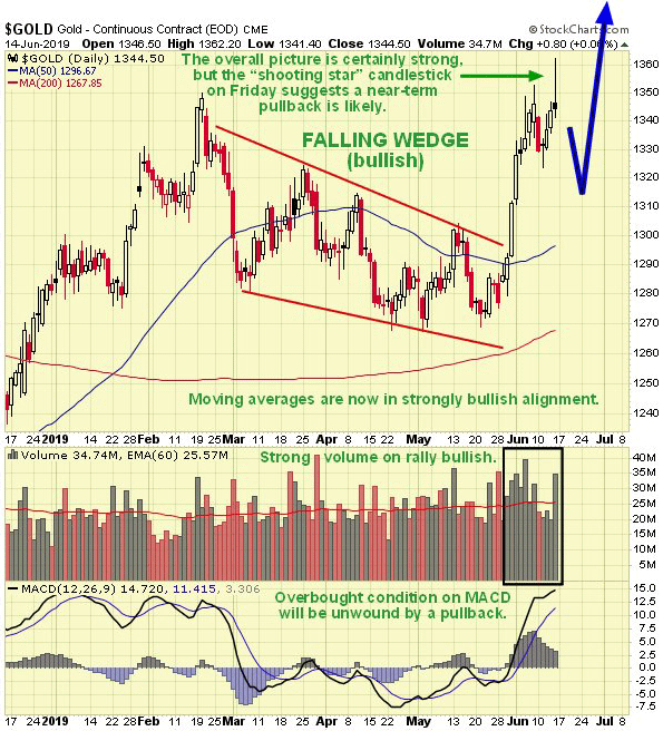 Die Dinge entwickeln sich so gut für Gold, dass wir sicherlich jede Kurzzeitkorrektur verkraften können. Mehr sogar, wir können sie als Möglichkeit erachten, um Positionen innerhalb des Sektors auszubauen, sei es mit ETFs, Aktien oder Optionen und natürlich Gold selbst.Mehrere Faktoren weisen darauf hin, dass eine leichte Kurzzeitkorrektur vor dem großen Breakout wahrscheinlich ist. Gold ist nach seinem letzten Anstieg überkauft und rundet nun unter dem wichtigen Widerstand nahe 1.400 Dollar ab. Das ist in dem aktuellen 6-Monatschart unten gut zu erkennen.