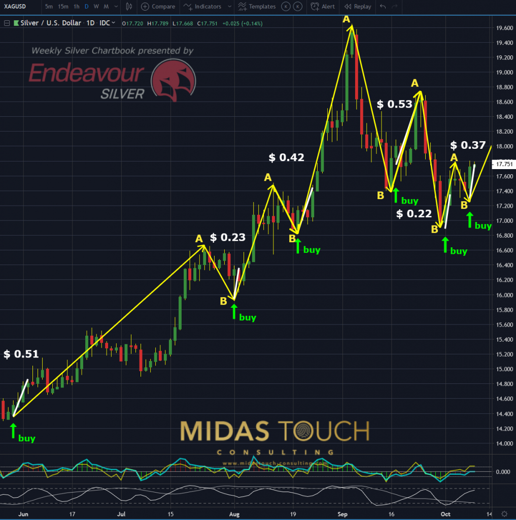 Silber in US-Dollar vom 8. Oktober 2019, Tageschart "Wie man mit geringem Risiko wächst":