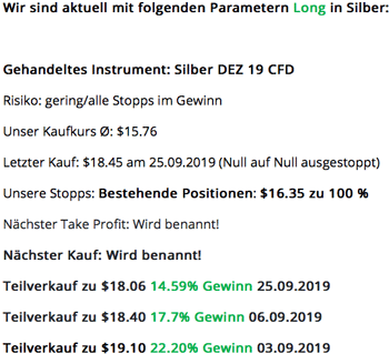 Wir lesen die Zeichen des Charts die sich uns präsentieren. Sie mögen meinen Schreibstil nicht mögen oder sonst etwas an den Artikeln beschissen finden (die sie trotzdem Woche für Woche lesen), aber an den Ergebnissen ist einfach nicht zu rütteln. Wer über die Bandbreite der Metalle die letzen 14 Trades nur Gewinner eingefahren hat, dessen Methodik sollte man man nicht als Blödsinn abtun.