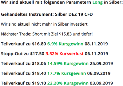 Jetzt Short zu gehen, ist uns in Anbetracht des zunächst verbleibenden Potenzials im Bereich von 16.20 $ bis 15.83 $, zu riskant. Noch ist die Messe aber nicht gelesen, fallen wir heute unter 16.66 $, kann schon kommende Woche der Zielbereich erreicht werden. Von wo aus wir die Situation neu bewerten und noch immer planen einen letzten Long einzugehen, dem sogar noch immer das Potenzial bereit steht die 19.75 $ zu übertreffen."