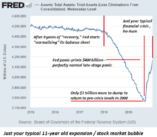 Die Liquiditätskrise, die ich befürchtete, traf tatsächlich neun Monate später ein. Der Repo-Markt verkrampfte sich, was dazu führte, dass die Fed ein QE-ähnliches Anleihekaufprogramm startete, das heute noch immer im Gange ist. Die schlechten Entscheidungen der Fed haben den Punkt erreicht, an dem alle Optionen schlecht sind.
