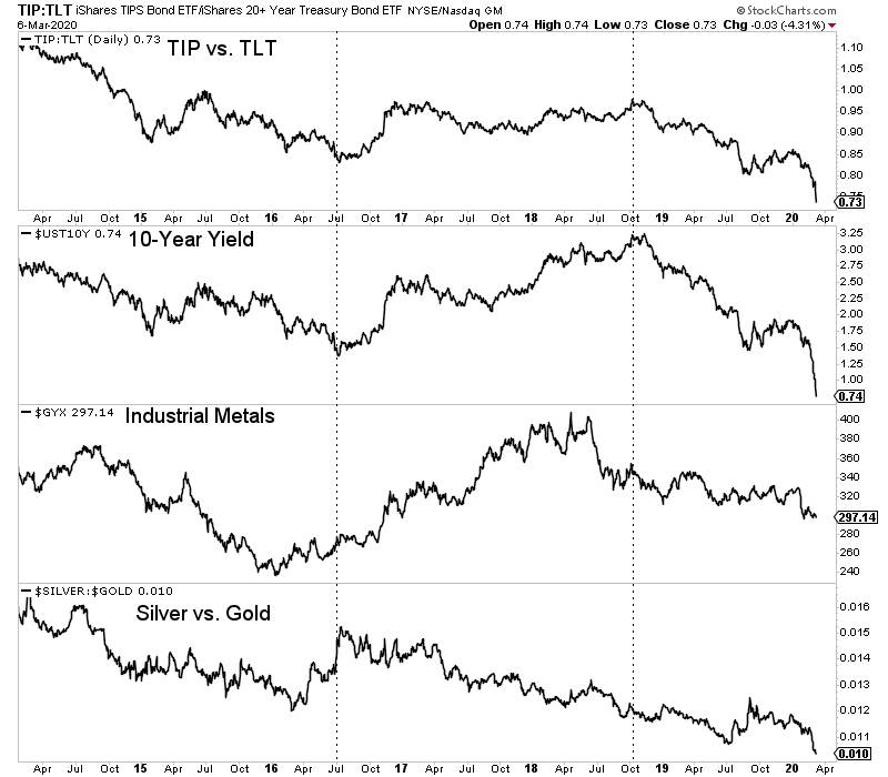 Die meisten Indikatoren der Inflationserwartungen bildeten Ende Dezember Böden. Beachten Sie, dass Silber gegenüber Gold keine ernsthafte Aufwärtsbewegung begann, bevor sich nicht die Inflationserwartungen bewegt haben.