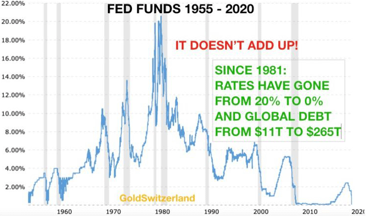 Die Krise, in der die Welt jetzt steckt, wurde nicht durch das Corona-Virus verursacht. Wie ich schon häufig in anderen Artikeln deutlich gemacht habe, ist das CV nur der Impulsgeber, wenn auch der brutalste, der die Welt hätte treffen können. Die wahre Ursache der Größten Finanzkrise der Geschichte sind die Zentralbanken. Seit 50 Jahren gießen sie Öl ins Feuer, indem sie fortlaufend die Kosten für Geldbeschaffung senkten, bis diese im Jahr 2008, als die Zinssätze auf NULL gesenkt waren, kostenlos wurde. Seither beobachten wir weltweit sogar Negativverzinsung.