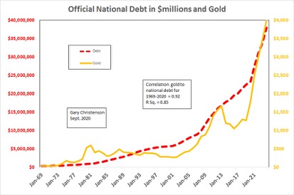 Die Staatsschulden stiegen seit 1913 fast um 9% im Jahr. Es gibt keine politische Absicht, die Schulden zu reduzieren, den Haushalt ins Gleichgewicht zu bringen oder sinnvolle Wirtschaftspolitik einzuführen. Stattdessen verfolgen Politiker universales Grundeinkommen, Moderne Geldtheorie, kostenlose Bildung, Gesundheitsvorsorge für Jedermann, Verbesserungen der Infrastruktur, weitere Sozialprogramme und andere, unbezahlbare Ideen. Die Staatsschulden werden im Jahr um 8% bis 9% steigen, oder schneller, und der Goldpreis wird durchschnittlich mit dem Schuldenanstieg Schritt halten.
