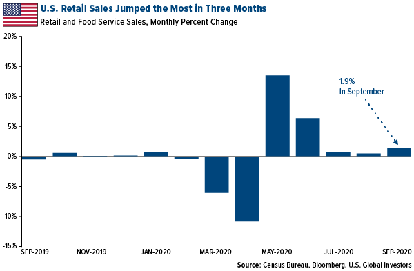 Das war die Meinung von Scott Kirby, CEO von United Airlines, der letzte Woche Winston Churchill zitierte. Dino Michael, Kopf von Hilton Worldwide, ist ebenfalls optimistisch. Die Einzelhandelsverkäufe in den USA zeigten großartige Widerstandsfähigkeit und stiegen fünf aufeinanderfolgende Monate an. Im September wuchsen die Verkäufe auf erstaunliche 1,9% im Vergleich zum Vormonat, der höchste Wert seit Juni.
