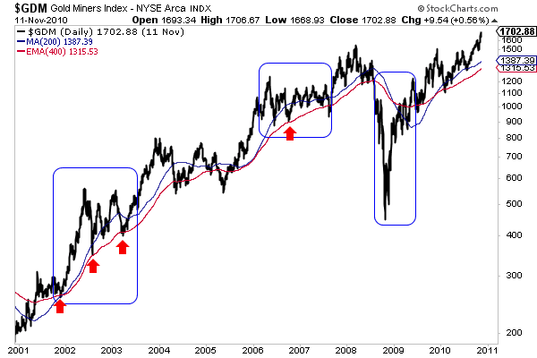 Seit Ende Juli habe ich Gold- und Silberaktien als Aktien zum Halten und nicht zum Kaufen eingeschätzt. Das Risiko einer Korrektur war hoch und Logik sowie Geschichte argumentierten, dass sie zumindest einige Monate andauern würde. Allgemein empfahlen wir einen "Nichtstun-Modus." Doch dieser neigt sich dem Ende zu.Der Sektor hat korrigiert und die Bären treten auf den Plan. Doch das Risiko bevorzugt nun die Bullen, und insbesondere nach dem Selloff am Montag. Wir haben angemerkt, dass es starke Unterstützung im GDX bei etwa 35 bis 36 Dollar gibt. Am 23. November schloss der GDX unter seinem 200-tägigen gleitenden Durchschnitt und fiel auf 24,36 Dollar.
