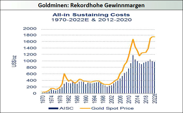 Der Gold- und Silberminensektor hat gemessen an den 2020er August-XAU-Index-Höchstständen bis dato um 17% korrigiert und scheint damit auf den jetzigen Niveaus nunmehr ausgesprochen attraktiv bewertet zu sein. Schließlich dürfte das Geschäftsjahr 2021 bei All-in Sustaining Costs von knapp unter 1.000 USD/Goldunze ähnlich gut verlaufen wie das vergangene, in dem der sich fast zu einem klassischen Value-Investment mausernde Sektor mit kräftig sprudelnden Gewinnen, beeindruckenden Free Cash Flows, einer deutlichen Verschuldungsreduktion und steigenden Dividenden zu überzeugen wusste.
