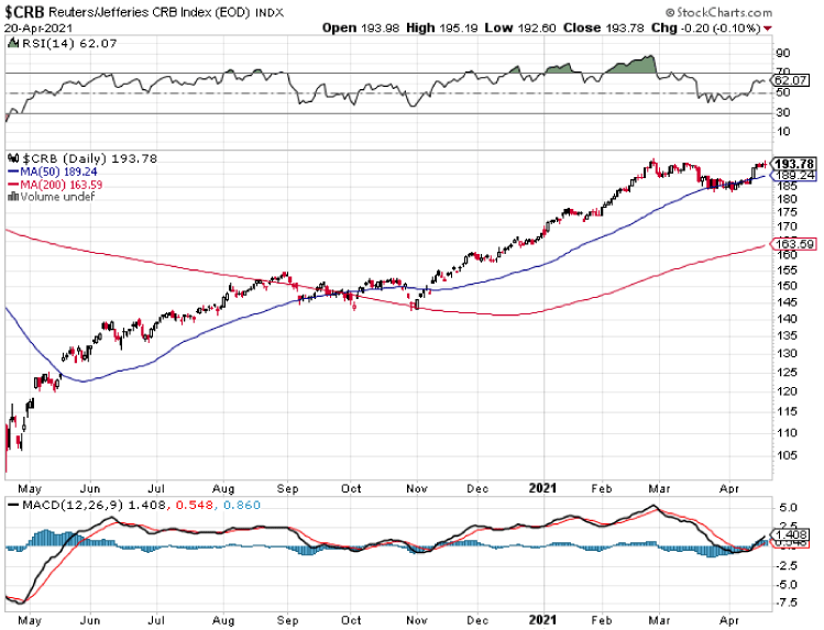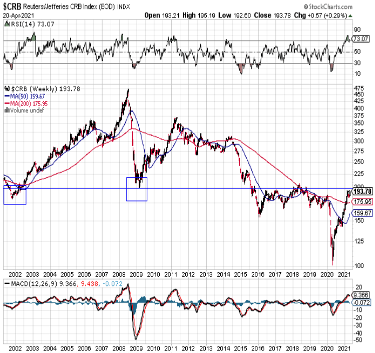Jahrelang versuchten die Notenbanken die Inflation anzuschieben, sind jedoch gescheitert. Die Zentralbanken öffneten die Geldschleusen, doch statt einer Inflation bei den Verbraucherpreisen kreierten sie eine Asset-Preis-Inflation. Nun scheint der Bann gebrochen zu sein. Sie kennen meine Einschätzung für die nächsten Monate. Ich rechne mit einer offiziellen Inflationsrate in den USA von deutlich über 3%.Die Rohstoffpreise werden diesen Trend verstärken und dafür sorgen, dass die Inflation deutlich über den Basis-Effekt hinaussteigt. Die ersten offiziellen Preiserhöhungen wurden bereits angekündigt, doch das ist erst der Anfang. Coca-Cola wird die Preise erhöhen, da die Rohstoffe für die Herstellung teurer geworden sind: Link.