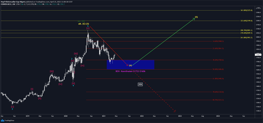 Für den Goldpreis heißt es weiter bergauf, solange er über 1759 $ bleibt. Insgesamt sollte sich der Anstieg bis zwischen 1846 $ und 1871 $ fortsetzen. Dann werden wir die Situation neu Evaluieren und schauen ob wir weitere Zielbereiche hinterlegen.