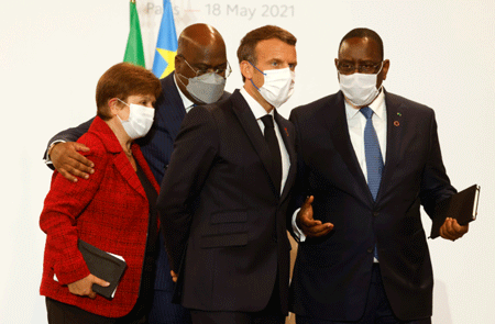 Der Pariser Gipfel, auf den sich Macron bezog, war der "Gipfel zur Finanzierung afrikanischer Volkswirtschaften", der am 18. Mai 2021 in Paris stattfand und an dem eine große Gruppe afrikanischer Staatsoberhäupter sowie einige europäische Staatsoberhäupter teilnahmen, außerdem die üblichen Verdächtigen aus den internationalen Institutionen G20, G7, IWF, Weltbank, OECD, EBRD und Afrikanische Entwicklungsbank. Auch die Chefin des IWF, Kristalina Georgieva, war anwesend, und sie hielt sogar eine Konferenzrede.