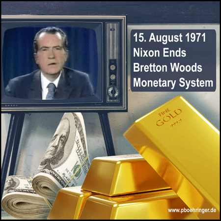 Er sagte "vorübergehend" / "temporarily" - aber gemeint war "endgültig" - also bis heute nun schon 50 Jahre - Ende unabsehbar. Seit 1971 haben volle drei Generationen an Wirtschaftswissenschaftlern, Bankern und normalen Menschen die bis 1971 über Jahrhunderte selbstverständliche Geldwelt mit einem realen Währungsanker nicht mehr selbst kennengelernt. Das Schließen des Goldfensters war das faktische Ende des Bretton-Woods-Systems - und es war der Moment, an dem das internationale Geldsystem endgültig und erstmals in der Geschichte weltweit deckungslos aus den Gold- und Silber-Fugen geriet. 35 Dollar je Gold-Unze war der damalige Kurs. Heute sind es 1800 Dollar je Unze. Das entspricht einem Wertverlust des Dollars von über 98%.