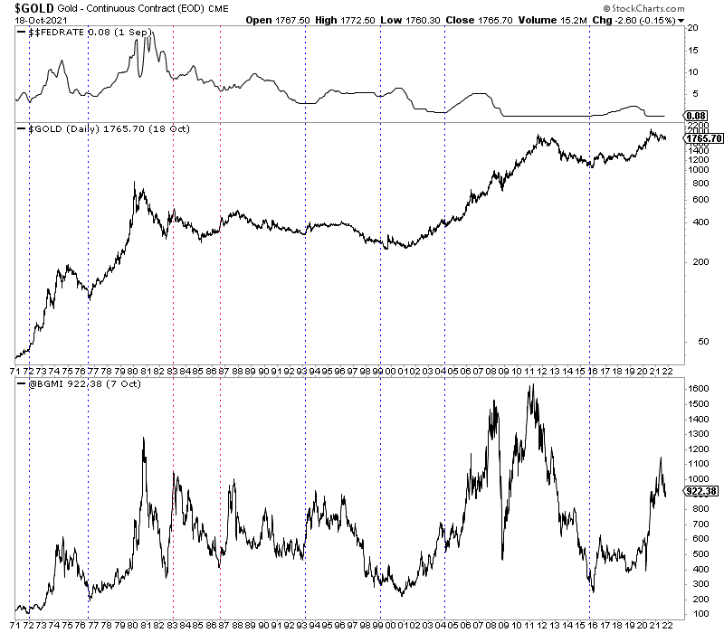 Fed Funds Rate, Gold (Mitte), Goldaktien (BGMI)